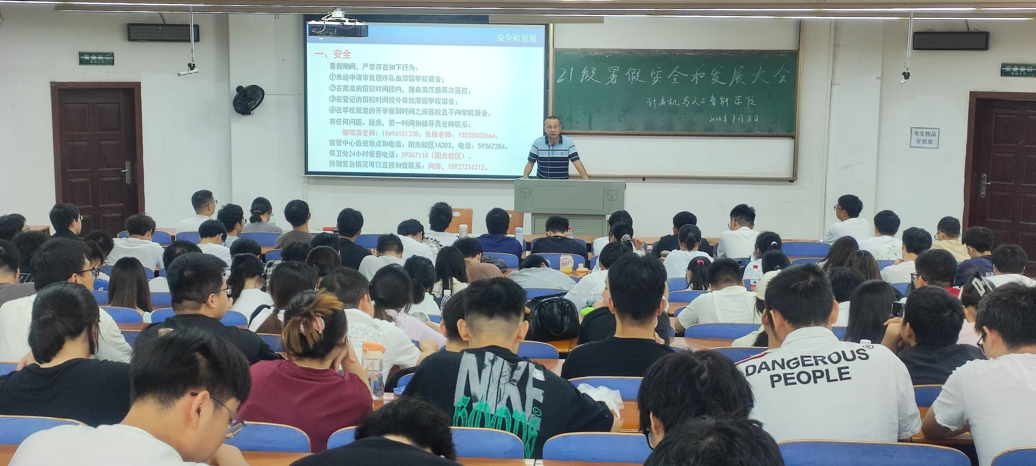 7月8日,永利yl23411集团于3号教学楼T102教室开展了2021级暑假留校员工安全和发展教育大会。全体院领导、计科系系主任陈佳、2021级辅导员谢瑞清、张栋及全体留校员工参加会议。大会以员工安全为基石,以考研和就业为航向,为留校学子们指引了前行的方向。