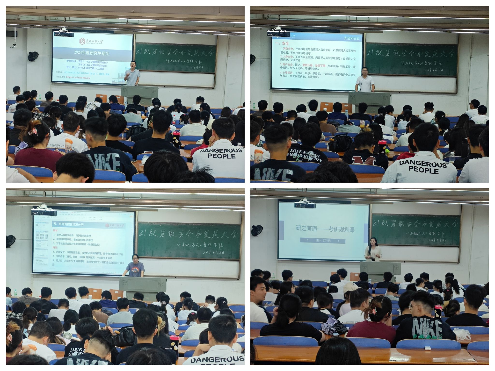 此外,副经理彭涛、副书记向涛和系主任陈佳也分别就报考本校研究生、就业和暑假留校安全等方面进行了精彩的分享和强调。他们的经验和教诲,为员工们提供了宝贵的指导和帮助。最后,文都考研特邀讲师邵老师进行了暑假考研备考指导,她详细介绍了备考方法和策略,为员工们指明了考研的道路。