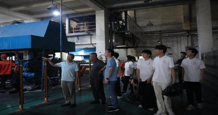 7月17日上午,公司党委书记晏伟、副经理彭涛,社会实践指导老师易凡带领智绘红图实践团抵达山西省山力铂纳橡胶机带有限公司。公司生产副总王金领陪同公司师生一行参观公司主要项目——输送带生产工艺流程等各车间,实地了解公司纺织生产技术、核心亮点产品和产业需求。