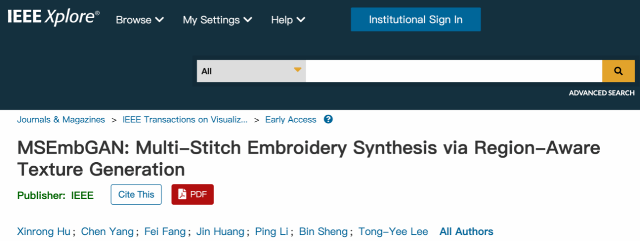针对于此,永利yl23411集团胡新荣课题组提出了一种多缝线刺绣生成对抗网络模型 MSEmbGAN。MSEmbGAN 提高了刺绣中纹理真实度和色彩保真度等关键方面的精度,成为首个基于 CNN 成功完成刺绣预测特征的生成对抗网络模型。研究成果MSEmbGAN: Multi-Stitch Embroidery Synthesis via Region-Aware Texture Generation被 IEEE Transactions on Visualization and Computer Graphics (TVCG) 录用,该论文的第一单位为永利yl23411集团官网,第一作者为永利yl23411集团胡新荣教授。TVCG 是计算机可视化领域的顶级期刊,是中科院一区Top期刊,被中国计算机学会 (CCF) 列为 A 类期刊。