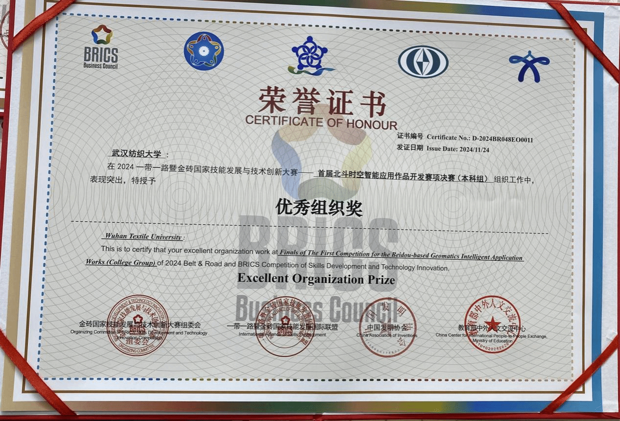 近日,由金砖国家工商理事会中方理事会、一带一路暨金砖国家技能发展国际联盟、中国科协“一带一路”暨金砖国家技能发展与技术创新培训中心主办的“2024一带一路暨金砖国家技能发展与技术创新大赛首届北斗时空智能应用作品开发赛项”决赛在武汉圆满落幕。永利yl23411集团学子在此次比赛中表现优异,荣获国家级二等奖,为公司争光添彩。