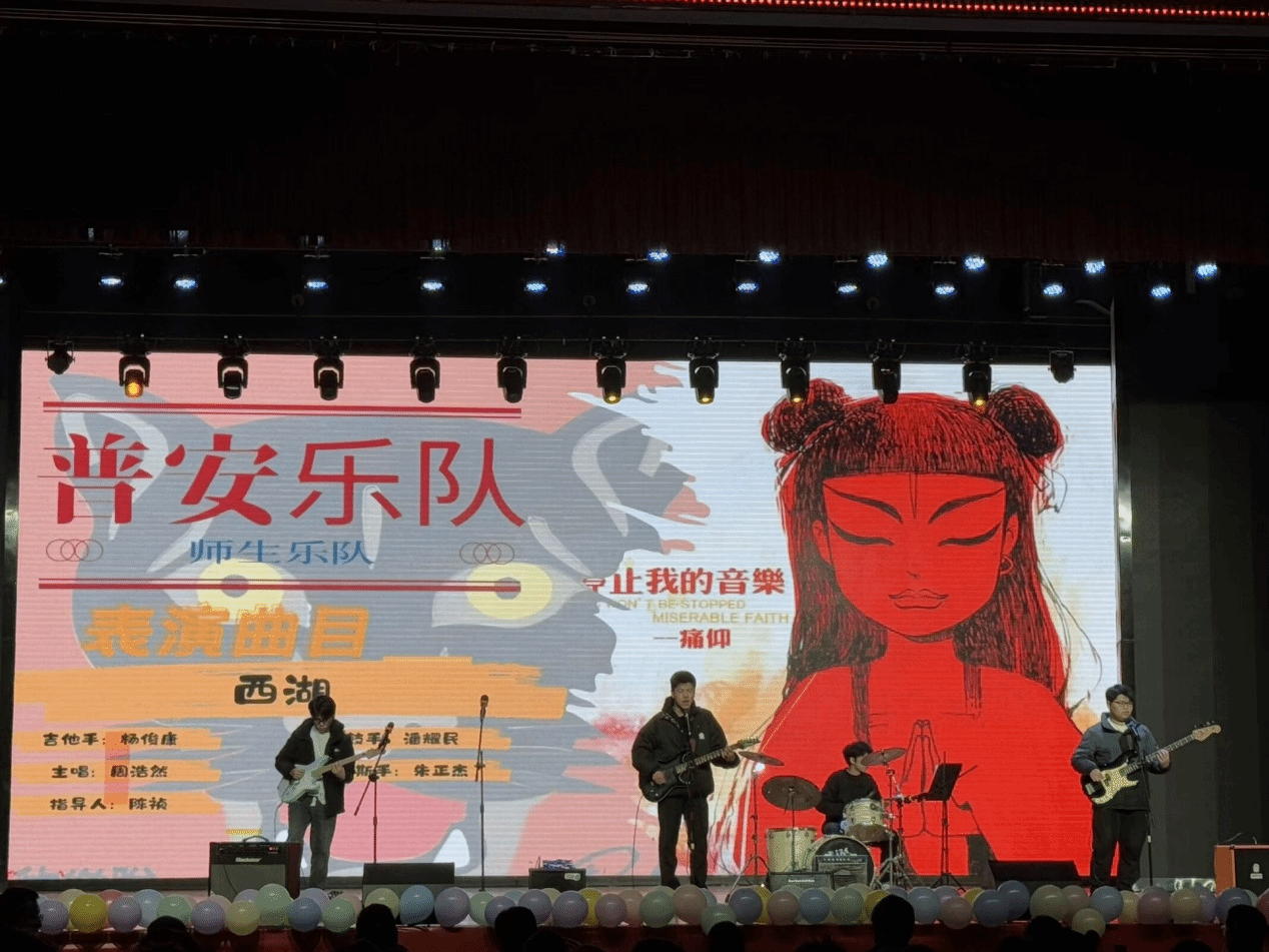 师生乐队带来的《西湖》+《无地自容》,用激情四溢的演奏点燃了现场气氛;舞蹈《APT》《红马》+《探窗》《BoomBoomBase》《whiplash》+《Antifragile》《Meow》展现了同学们的青春活力与昂扬斗志;朗诵节目《雪Distance》,声情并茂地传达了深厚的情感;歌舞《我的未来式》则以欢快的节奏和灵动的舞姿展示了计智学子对未来的美好憧憬。