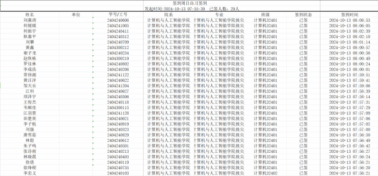上图为特软班签到情况,由此可见同学们对周六自习保持着积极态度,同时同学们表现出正向的反馈。一位同学说道:“周六自习让我能够静下心来,深入钻研那些平日里因时间有限而未能充分理解的知识点。在这里,我感受到了浓厚的学习氛围,大家相互激励,共同进步,这种感觉真的很棒。” 另一位同学也表示:“通过周六自习,我学会了更好地规划自己的学习时间,提高了学习效率。而且在遇到问题时,能够及时与身边的同学交流探讨,这种学习方式让我收获颇丰。”